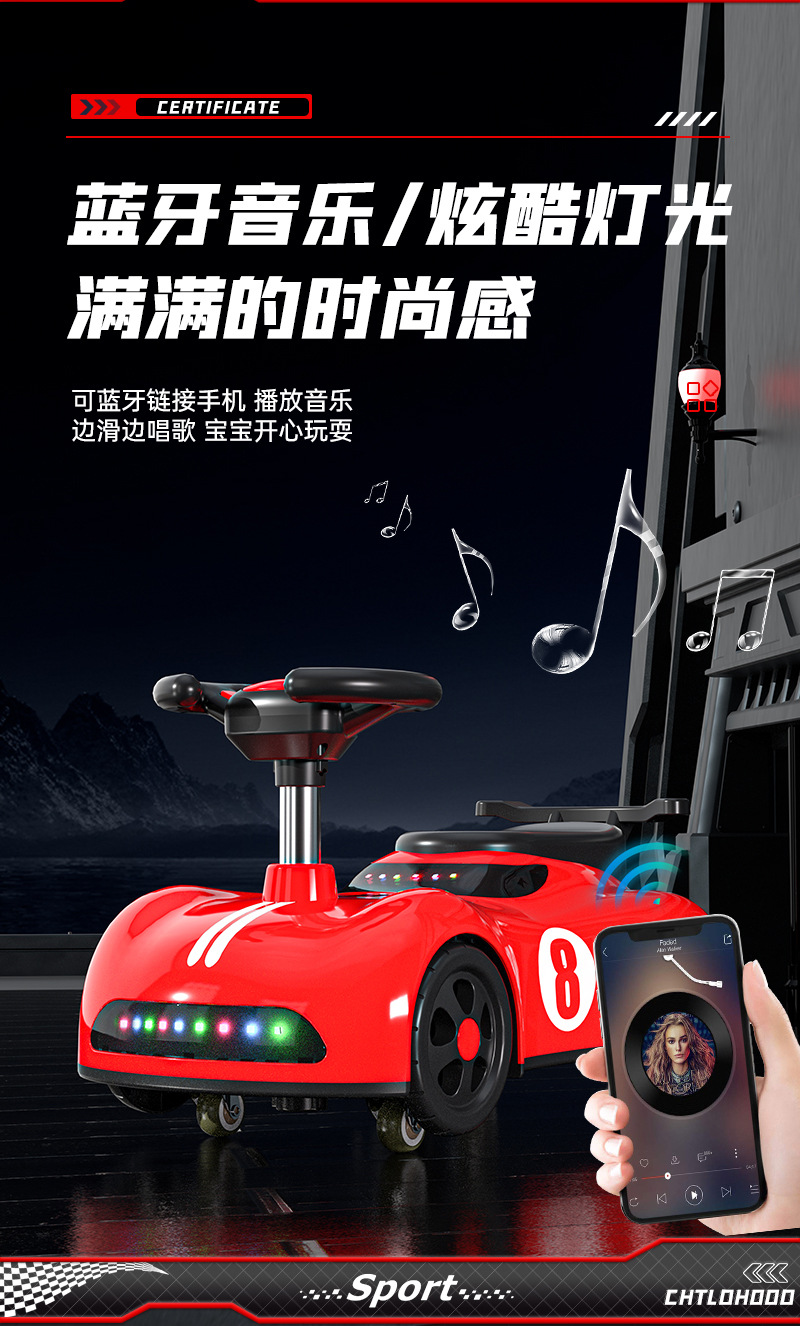 儿童滑行车静音轮助步车1-3岁小汽车儿童滑行玩具车蓝牙音乐溜溜