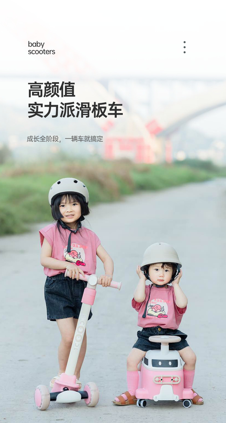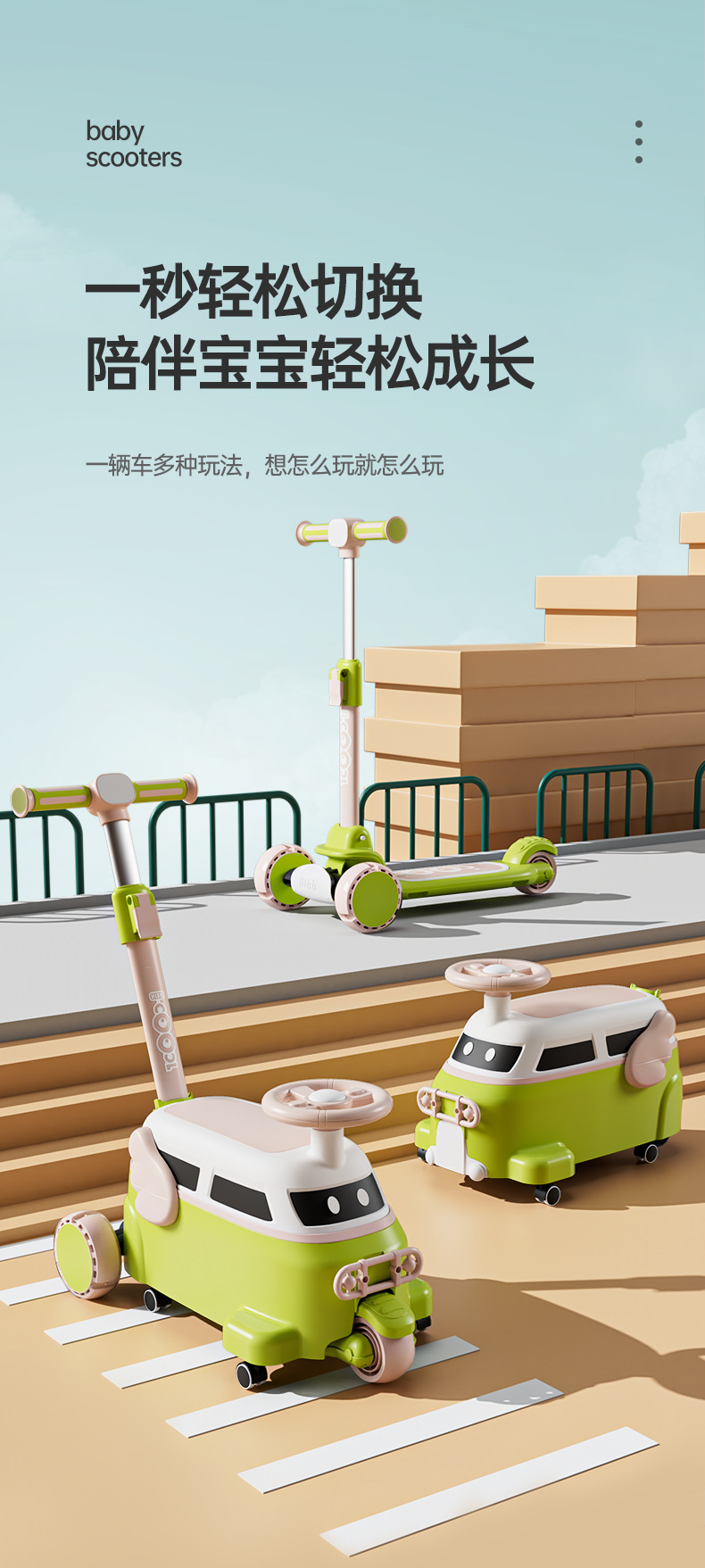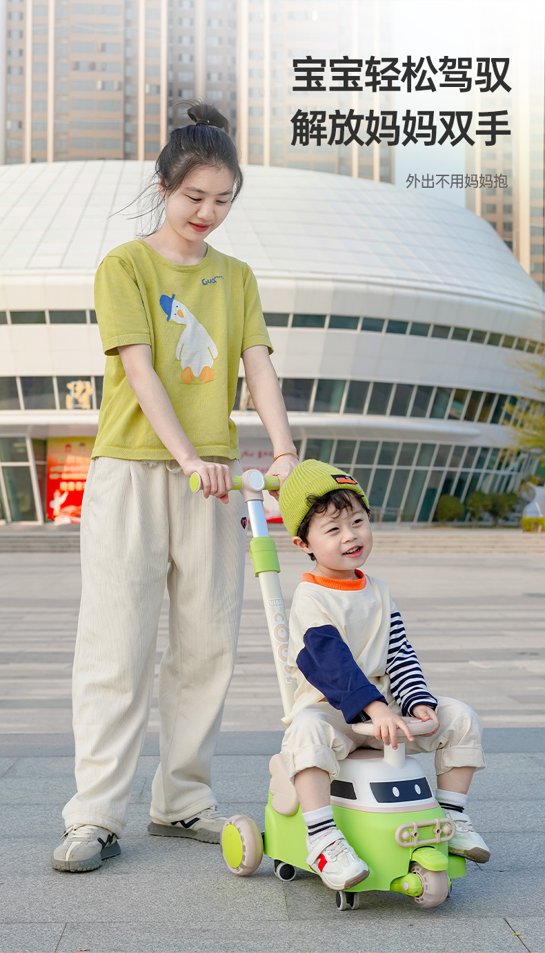 【暮夕粉/油果绿/深海蓝-滑行车】+大储物箱+万向轮,【滑板车】+稳静音闪光轮+一件折叠+升降调节,【三合一】+[溜溜车+滑板车+手推车]