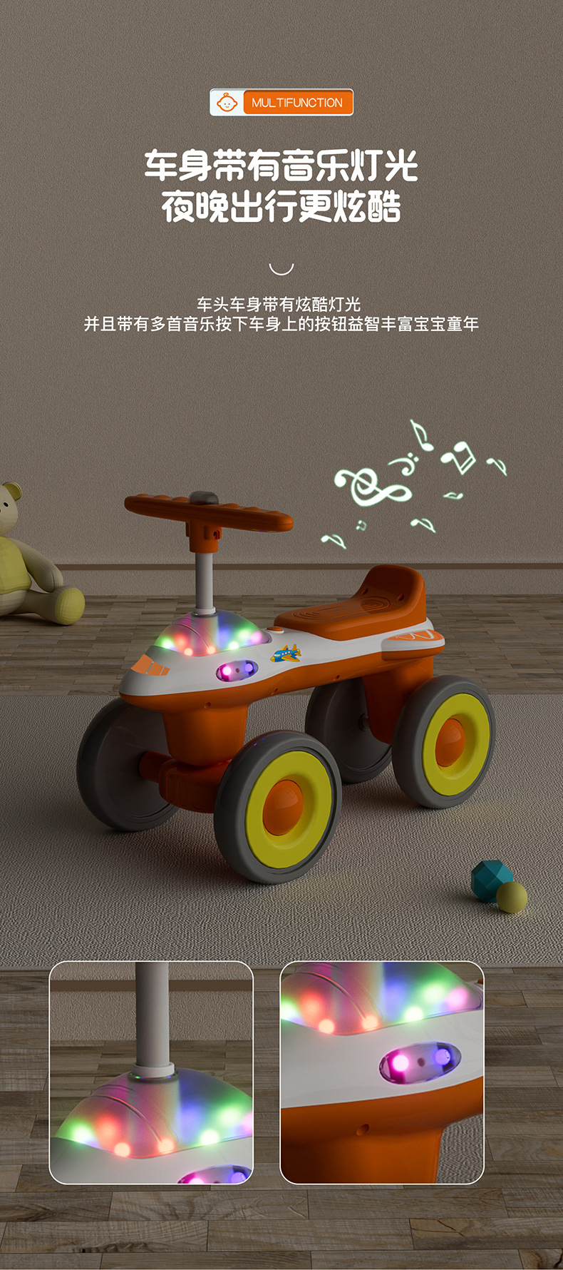 新款西瓜儿童滑行车万向轮音乐灯光花生车防侧翻学步溜溜扭扭车