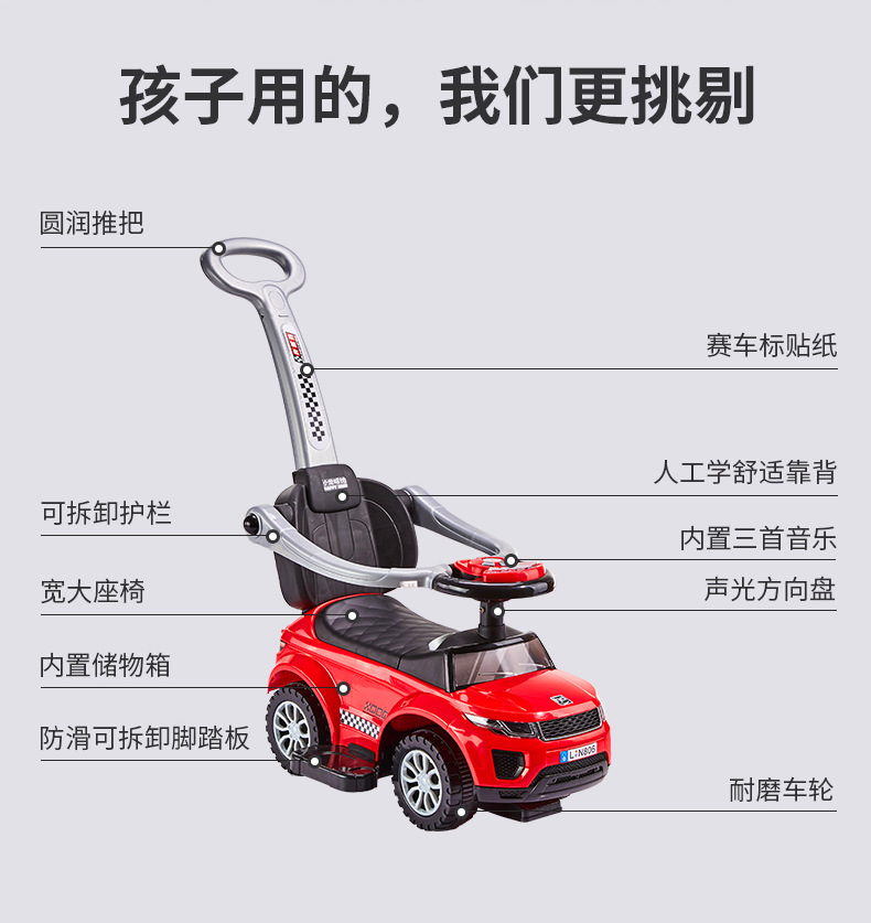 儿童扭扭车宝宝滑行车1-3岁四轮带推杆推车推把滑行车