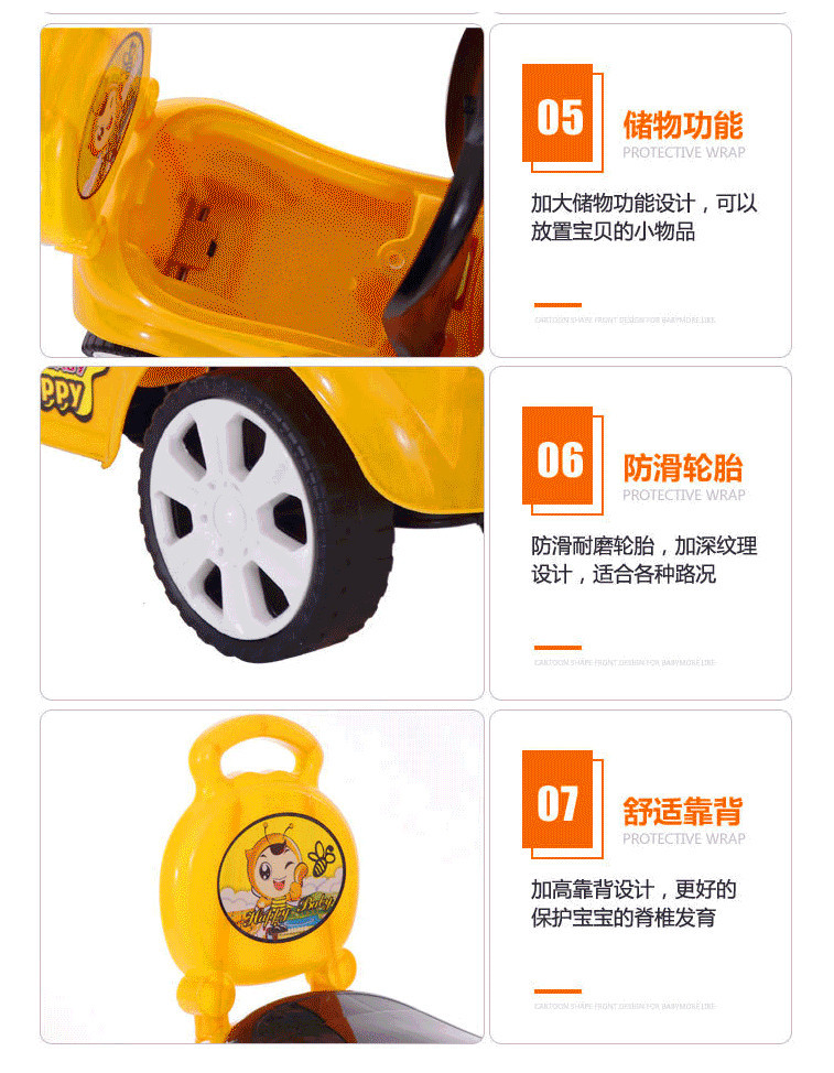 儿童滑行车扭扭车蜜蜂童车溜溜车奶粉婚纱赠品音乐+七色灯光