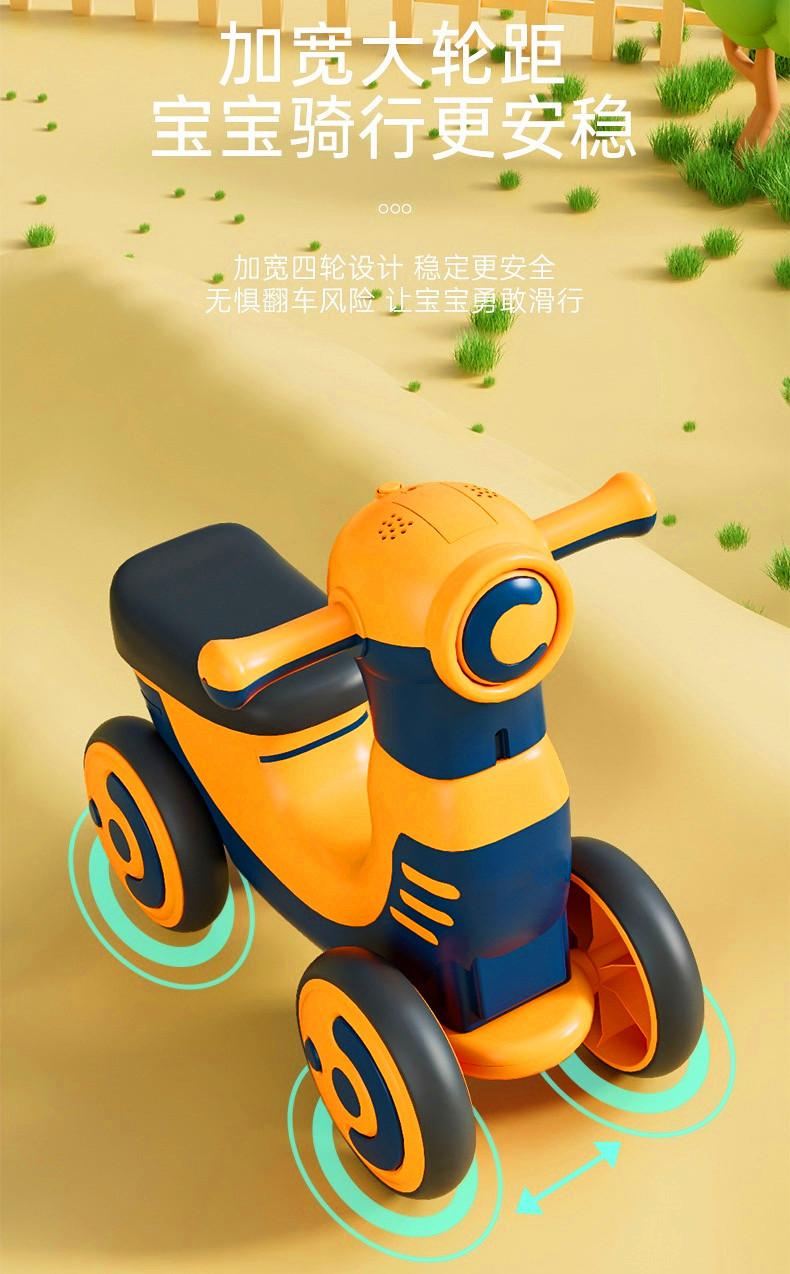 新款西瓜儿童滑行车万向轮音乐灯光花生车防侧翻学步溜溜扭扭车