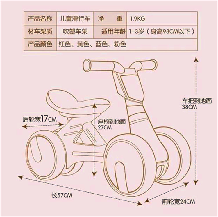 儿童滑行学步车 1-3岁宝宝生日礼物男女孩无脚踏四轮 米高滑行车