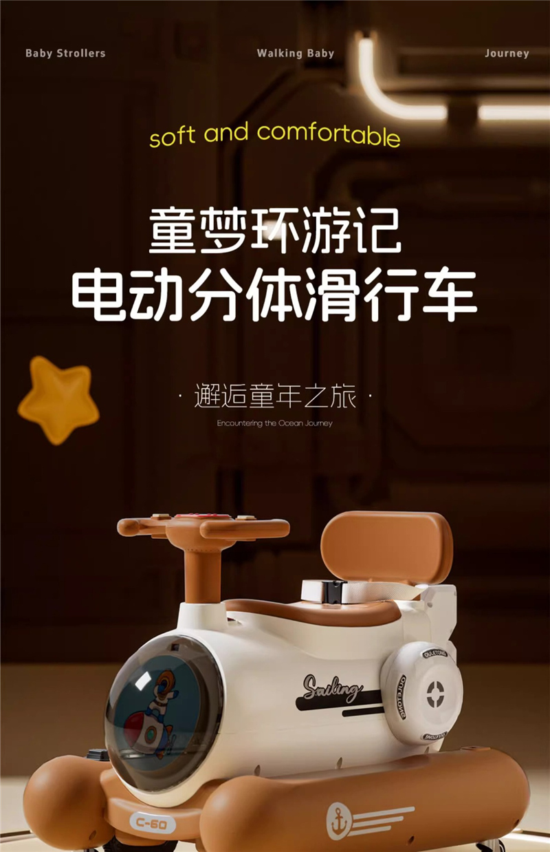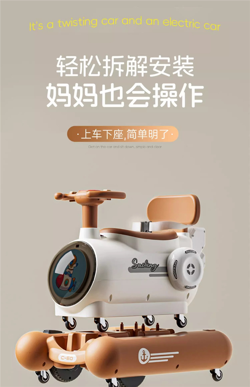 儿童电动车室内两用分开滑行扭扭车男女宝宝可坐人灯光音乐早教车