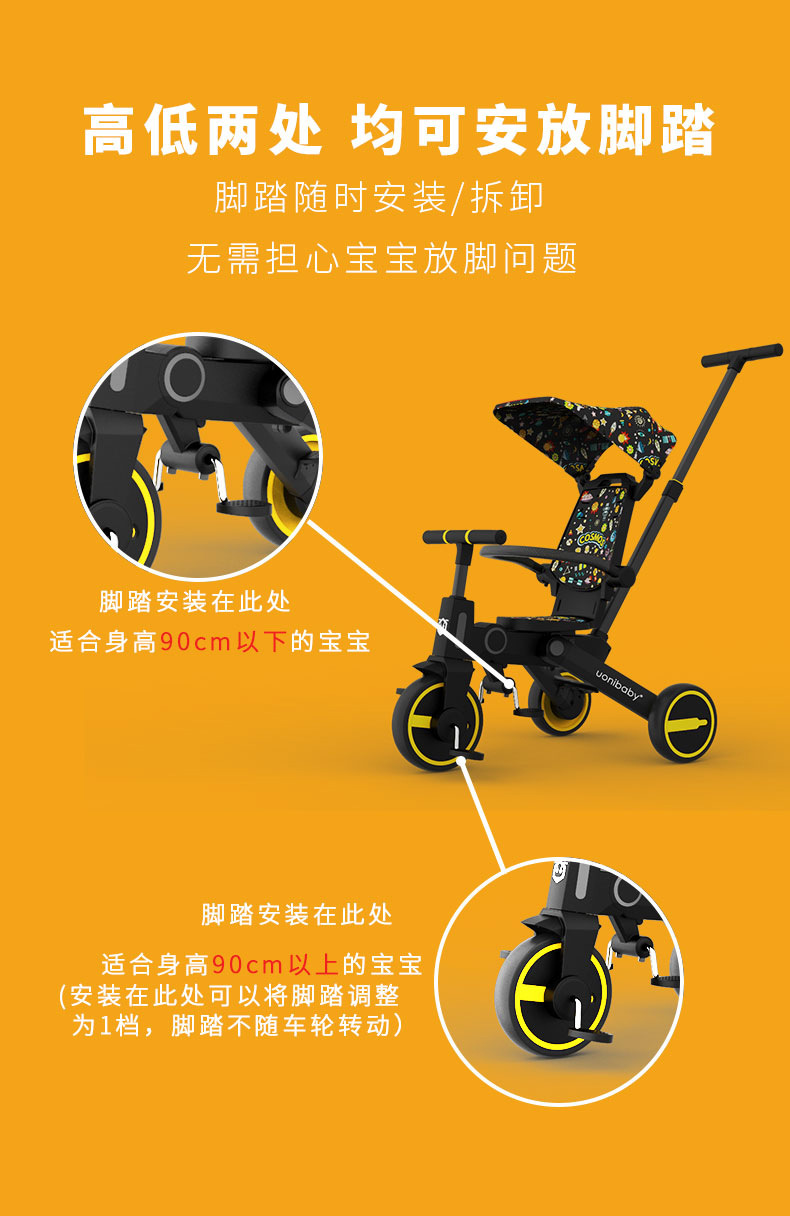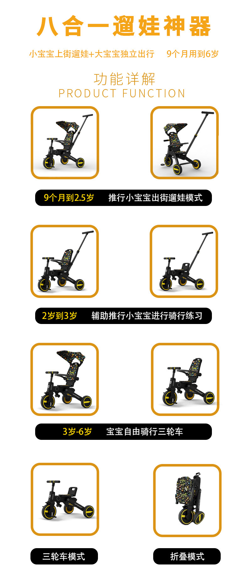 儿童三轮车遛娃手推车可折叠轻便婴儿宝宝脚踏车七合一折叠三轮车