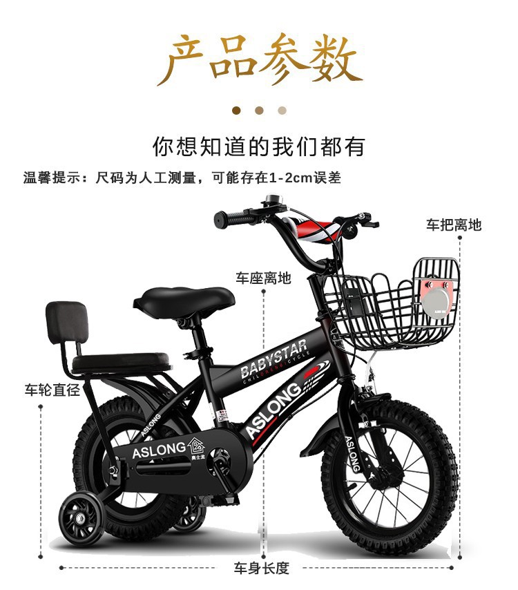 新款儿童自行车带辅助轮12-14-16-18寸男女孩单车宝宝轻便童车