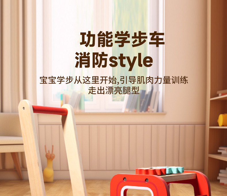 产品功能:这款产品是多共能集合为一体的幼儿学步车;12个月到4岁小朋友都可以玩耍,可以作为幼儿学步,承重60KG 中间盖板是可以打开,可收纳小朋友喜欢的玩具,DING部齿轮有助于小孩手眼协调,车子两边是图形积木,适合幼儿颜色配对,抓握认识图形,整体车身是一个消防车的造型,对于消防车的热爱 不管是男宝还是女宝 都是无可挑剔的,产品图片为实拍,整车采用了优质椴木+密度板 全身打磨光滑 无一点毛刺,整车采用了进口水漆放心使用,出口品质,内销价格,让你宝贝拥有一台可推,可骑 可收纳的好玩具哦