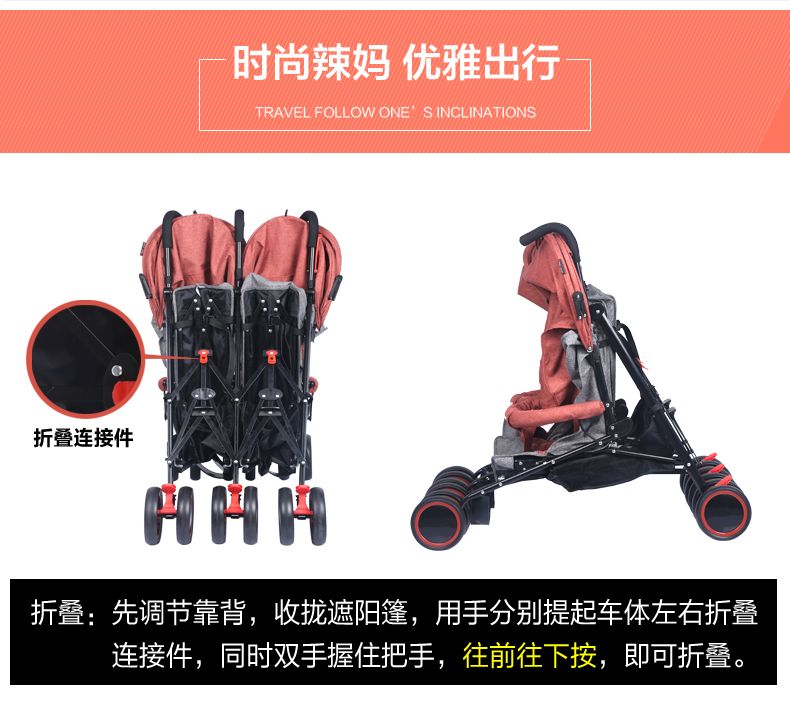 婴儿车双胞胎推车可坐可躺轻便可折叠婴儿车双胞胎推车可坐可躺