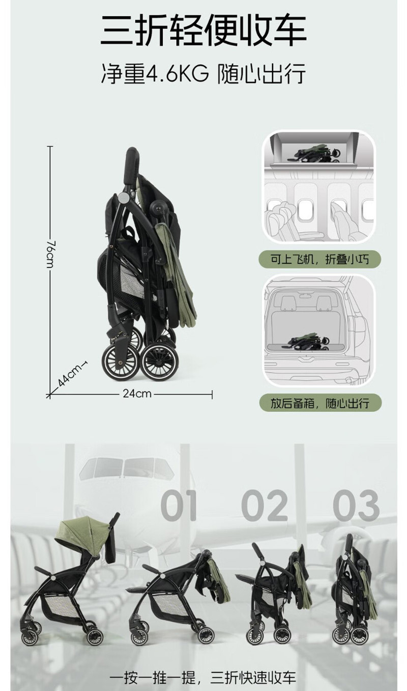 婴儿推车0-3岁婴儿车便捷轻量型婴儿推车可坐可躺手推车轻便一键收车