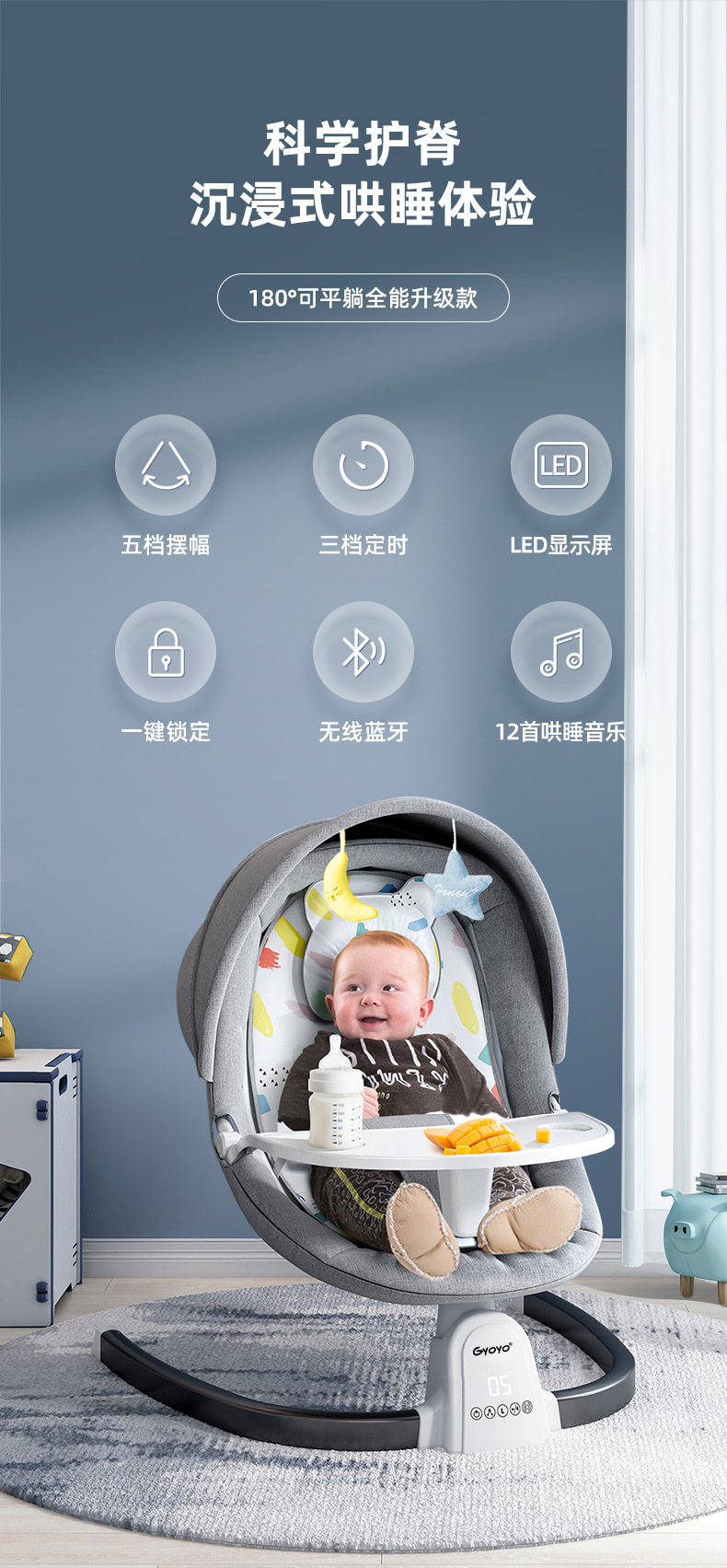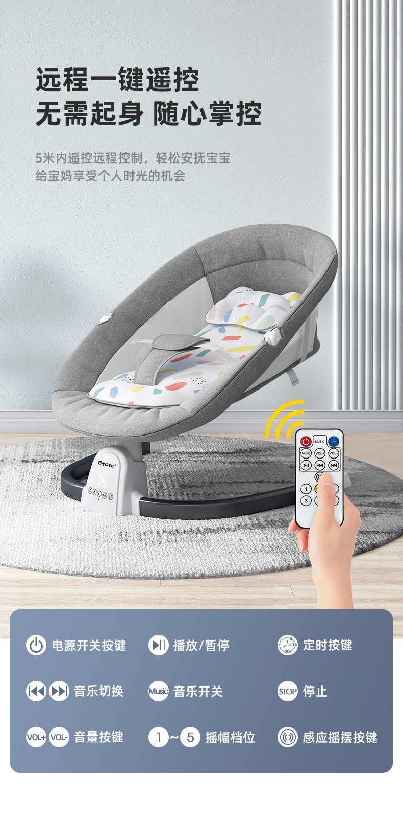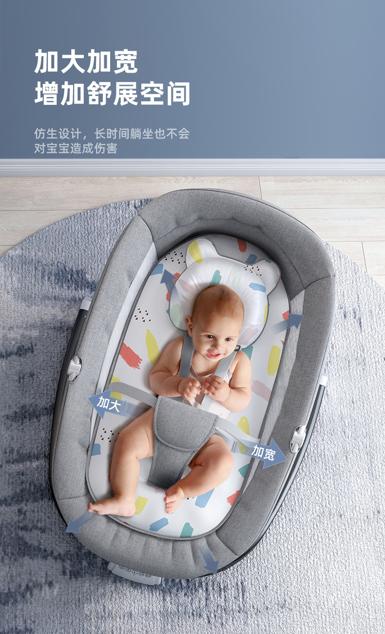 新款哄娃神器安抚摇椅可调节带餐盘宝宝哄睡摇篮床可摇摆婴儿床