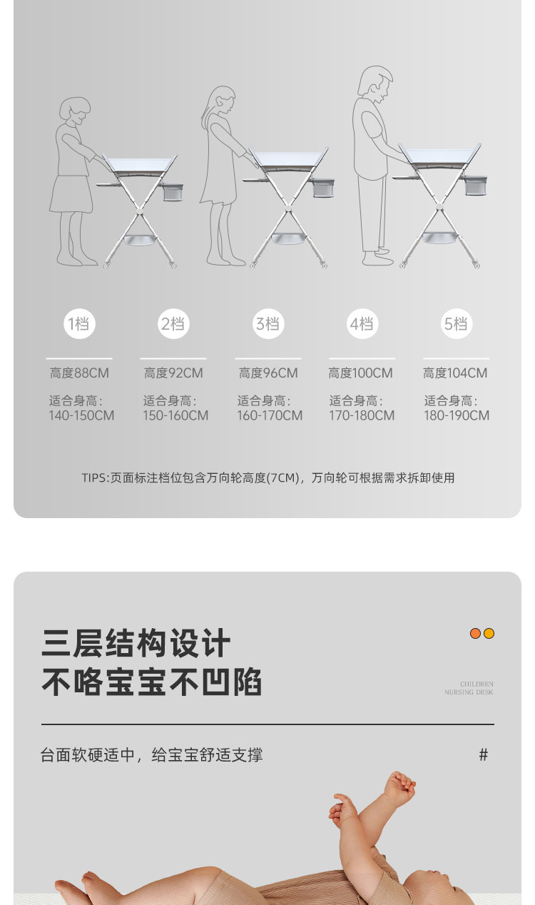 尿布台婴儿护理台便携式多种功能可折叠可洗浴床上换尿布抚触台
