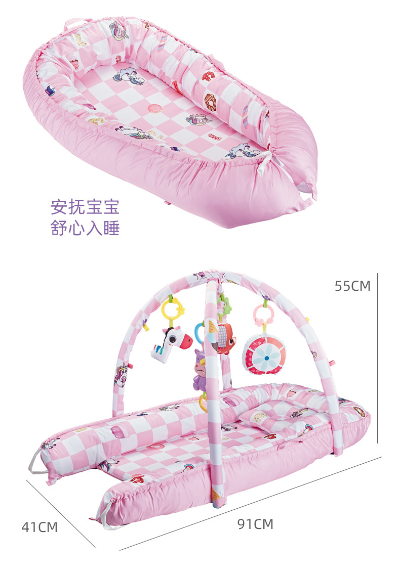 特色功能:安抚摇床,带音乐,四合一游戏毯健身架,早教摇铃