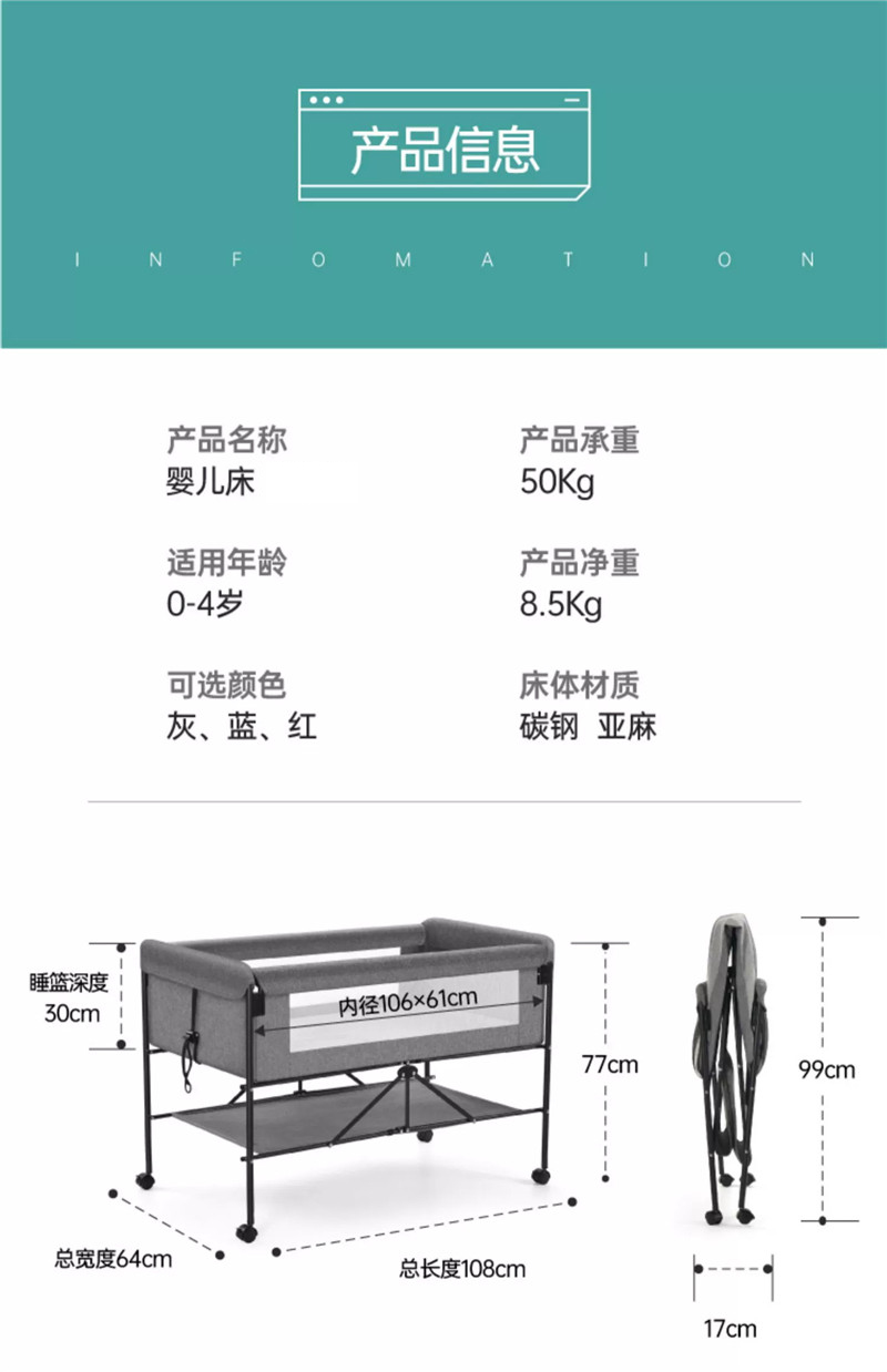 婴儿床可移动多种功能可折叠加大款宝宝床新生儿睡篮床便携式拼接床