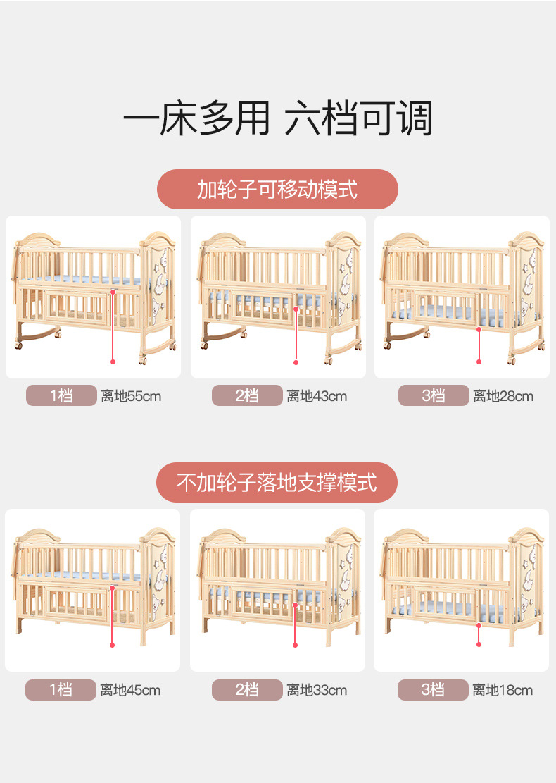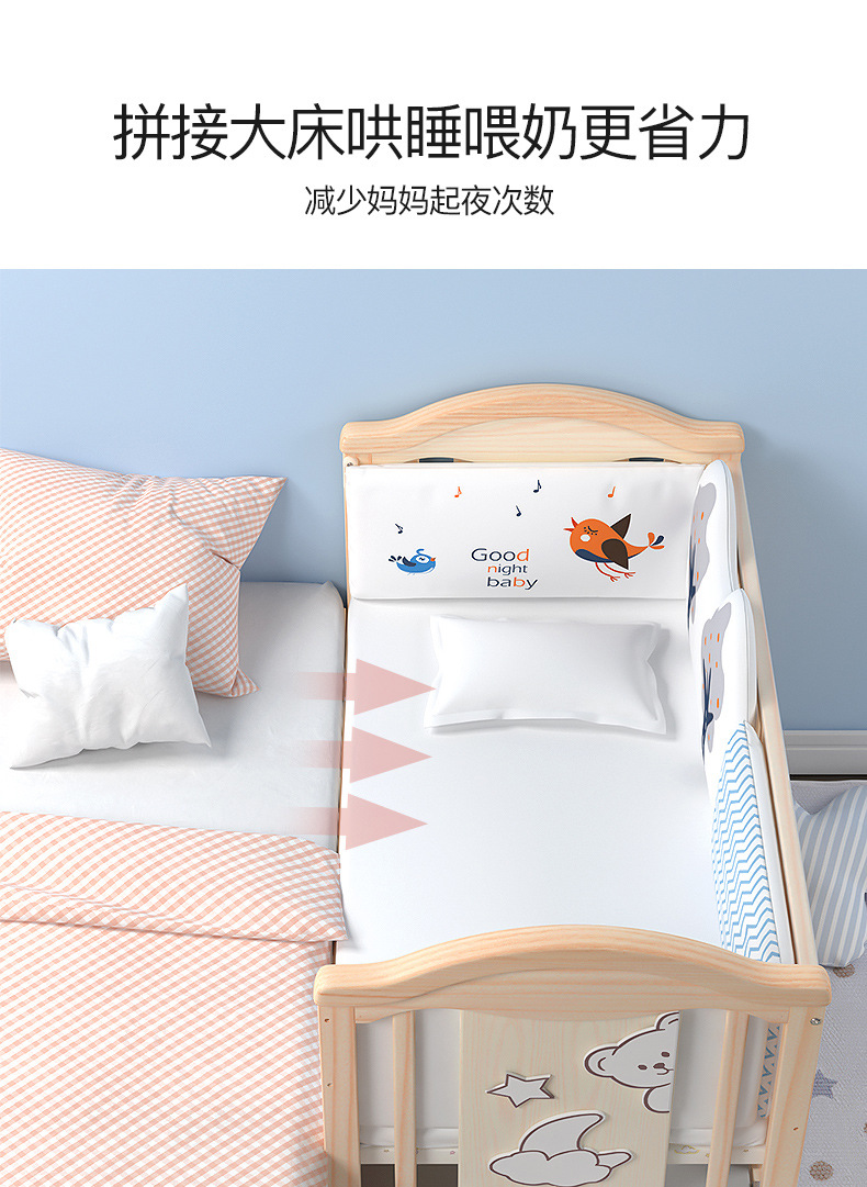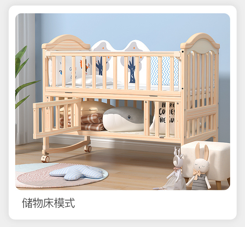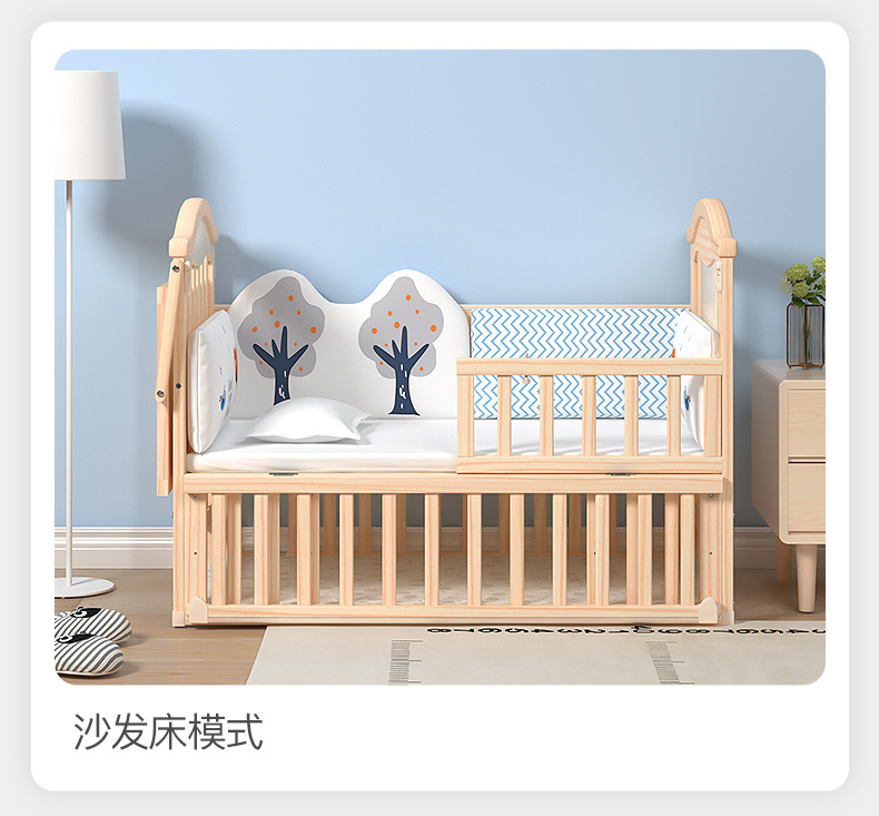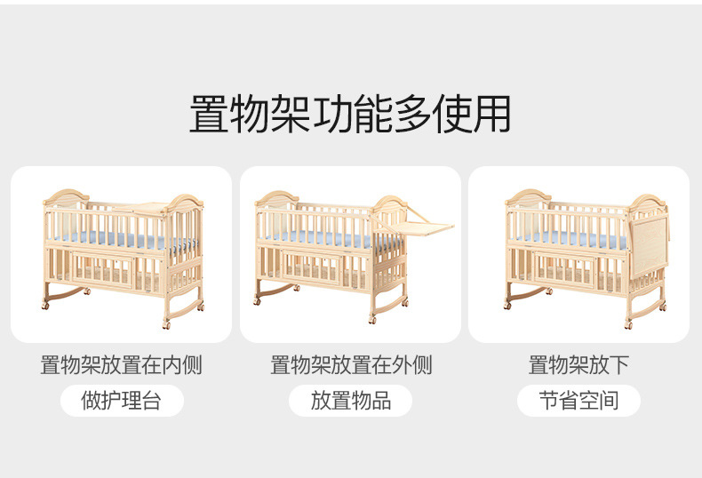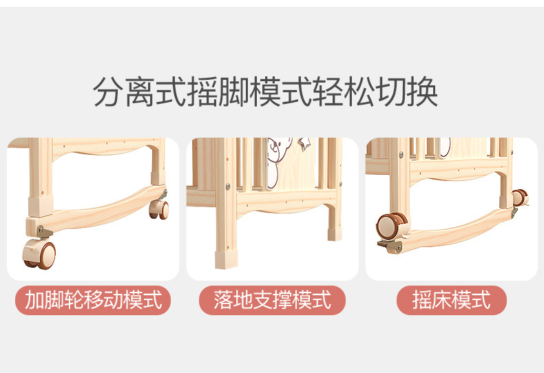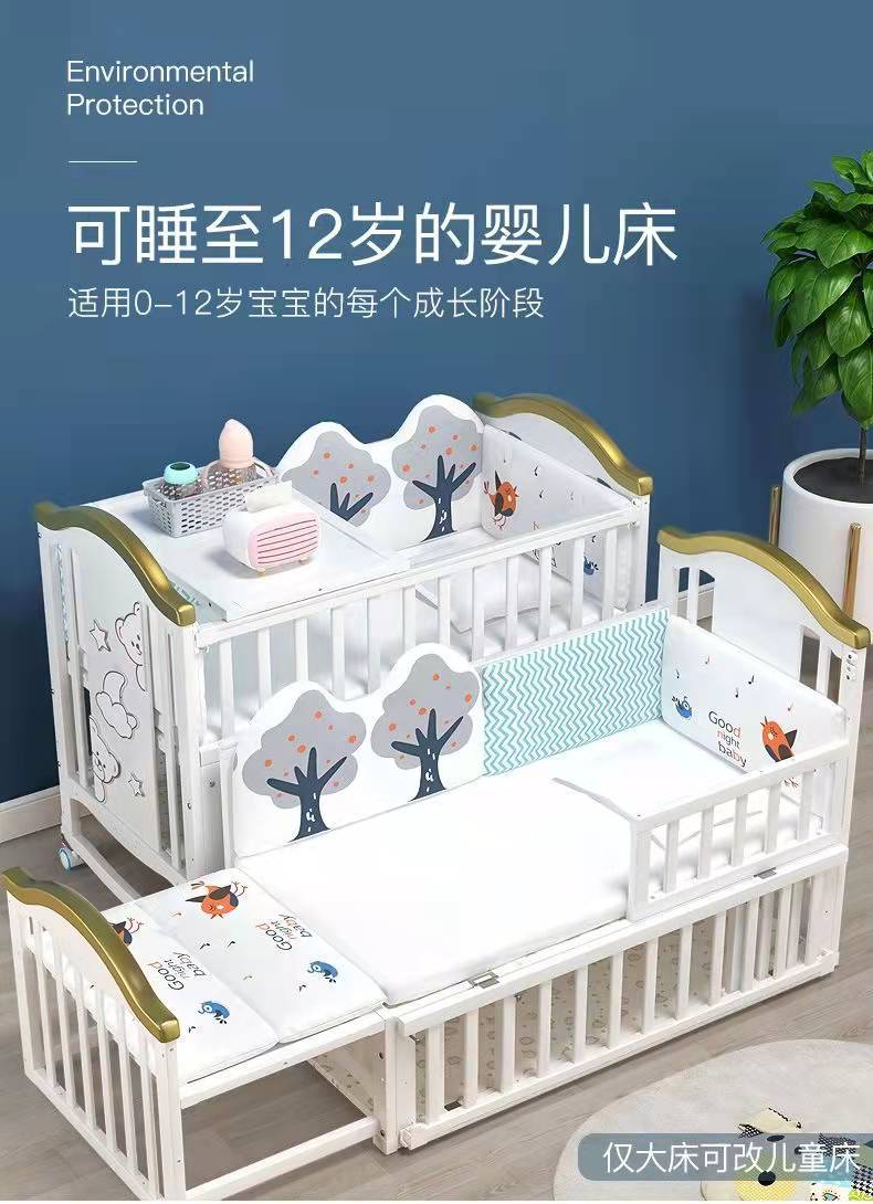 侧栏可打开与大床拼接 摇脚可平面落地 可变儿童床 可变便携尿布台/置物架