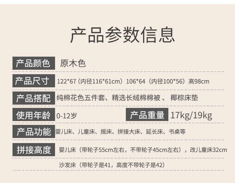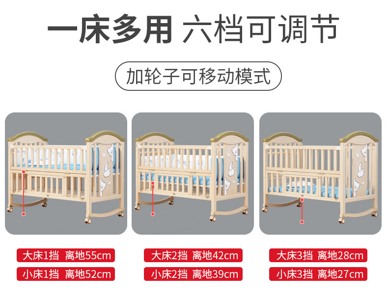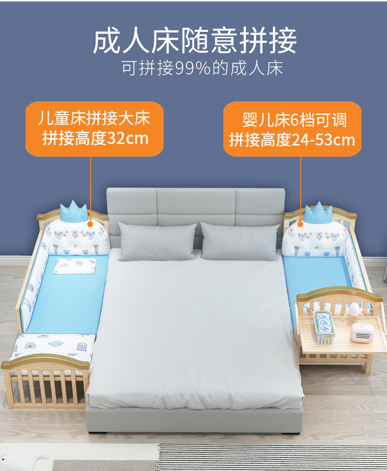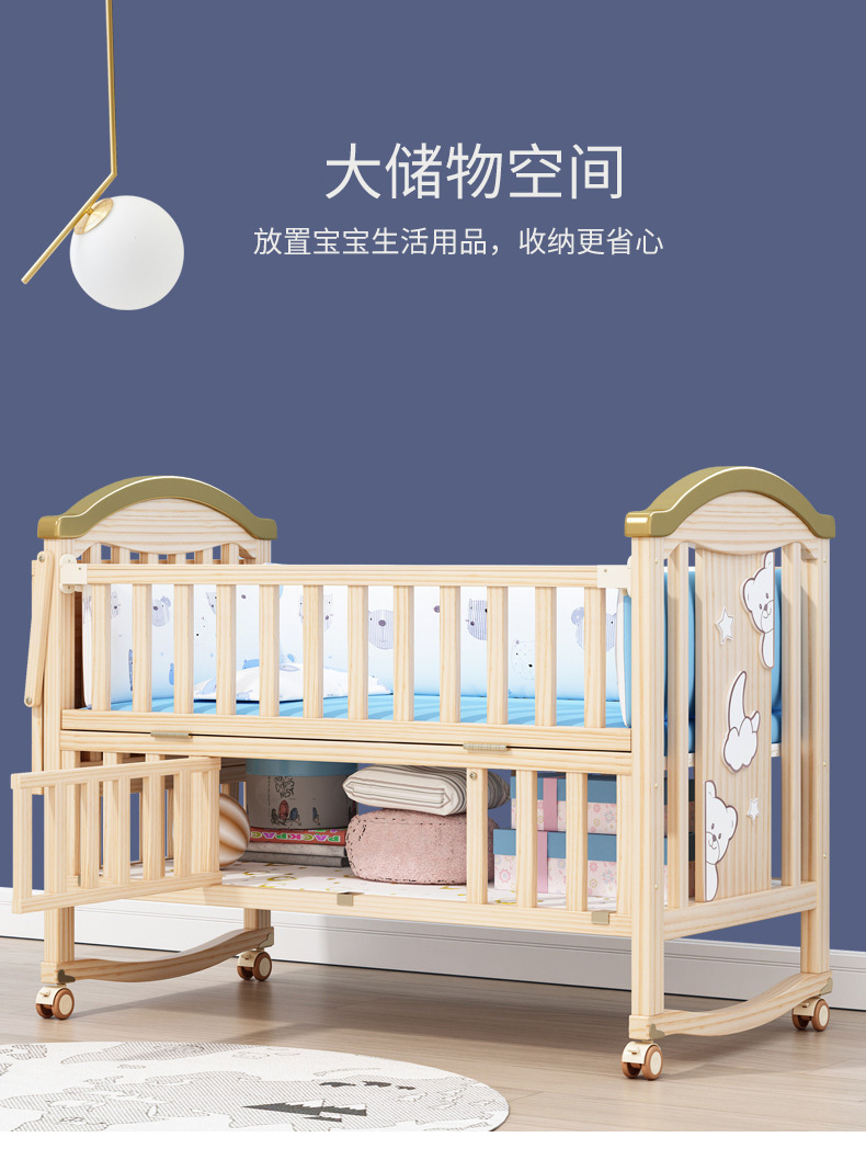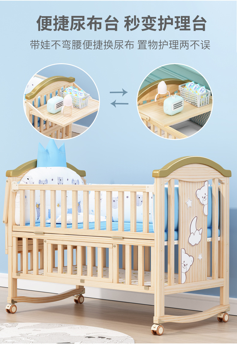 婴儿床 实木无漆宝宝bb摇篮多种功能儿童新生儿可移动 拼接大床